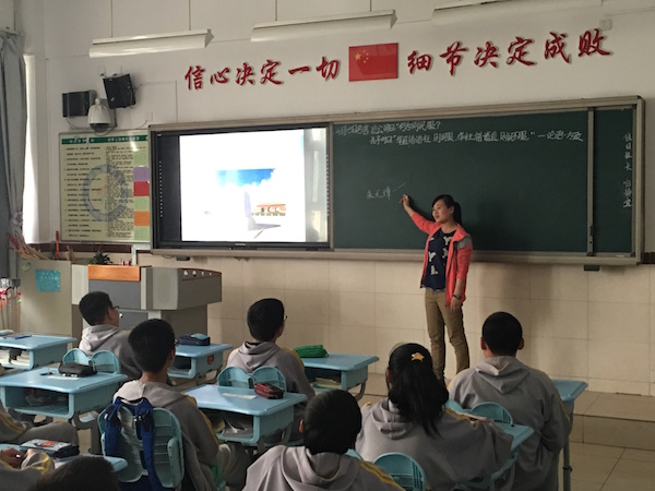 2014硕士一支部成员华莉、游梦雨、杨翰戎、许政代表小组参加了本次活动,主讲人华莉在课上为初二(3)班的同学讲述了十三陵的故事。课程伊始,华莉向同学们提出问题:“明代共有16位皇帝,但为什么只有十三座陵墓?”引发了同学的积极思考与回答,随后主讲人以明代皇位的传承为线索,梳理了16位皇帝与十三座陵墓的由来。讲授中穿插的图片和视频使内容更为生动,45分钟的课程饱满而充实,使同学们对于近在身边的十三陵有了更为全面的了解。