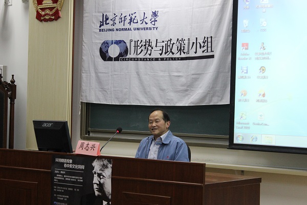 周志兴老师认为“特朗普现象”反映的正是美国社会的上下撕裂问题。同时,周志兴老师也指出中国同样存在社会撕裂问题。需要注意的是美国和中国社会撕裂问题的不同,美国在沉闷中求变,而中国则在改革中求变。周志兴老师认为中美文化这种差异的根源在于建国方式的差异,他用了一个形象的比喻:“这是基因上的差别。”中国自古以来的朝代更替都是“打出来”的,而美国则在独立战争后通过谈判“谈出”美利坚合众国。中国的方式决定了胜利方的体制一定更加优化、效率高。因此中国以效率为导向,强调集权与统一。相反,美国的方式决定了在谈判中公平是第一要素,因此美国以公平为导向,强调分权与制衡,他们也更善于妥协。在这种基因差异的基础上,美国与中国的求变方式表现出明显的差异。周志兴老师指出,美国两党交替执政的政治局面延续多年,随着近年美国经济频频出现问题,尤其是美国民众的就业率下降,政客们只安抚而不行动使民众渐渐丧失对政府的信任。在这种背景下,特朗普打破“政治正确”的竞选言论,无疑比其他政客一成不变的言论更加吸引广大选民,这也是特朗普的竞选之路通畅的重要原因。中国经过30年来的改革开放,仍有许多的地方需要继续改革,所以说中国是在改革中求变。