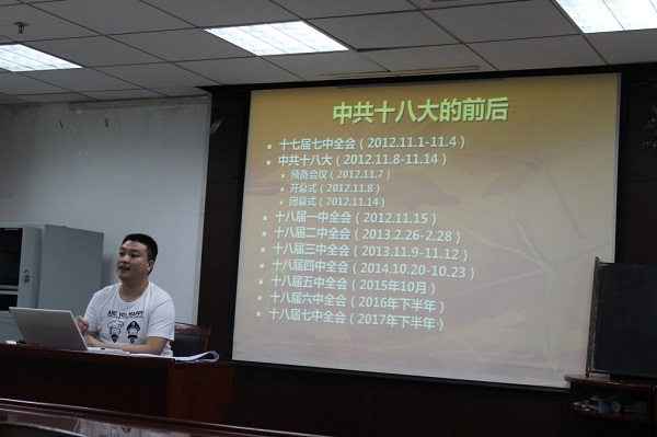 第七十四次培训于10月20日晚八时和27日晚八时在主楼举行,此次培训以“台湾政治生态”为主题。培训中结合主讲人在台湾大选期间的亲身经历,介绍了台湾政党概况、政治架构、选举流程和独特的选举文化等方面的知识。相关选举视频和实物的展示更让小组成员们对台湾政治生态有了进一步的深切体会。