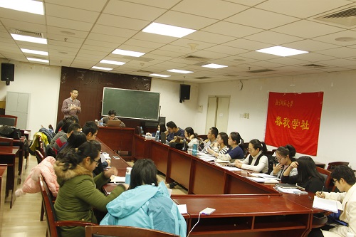 读书会结束后,春秋学社又对2015级社员进行了期末备考指导。社长宣柳希望社员们能够以勤恳认真的态度对待期末考试,并预祝社员们取得优异的成绩。