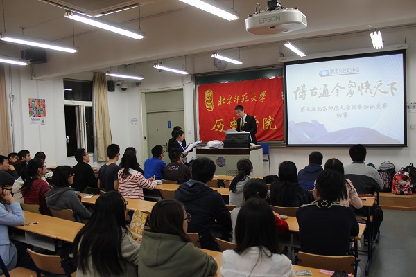 “博古通今 胸怀天下”北京师范大学时事知识竞赛是师大学子一年一度的时事知识盛会,现已成为北师大一项传统活动,为我校同学提供了一个展示自我、增长知识、开阔眼界的平台。“博古通今胸怀天下”北师大时事知识竞赛的试题形式灵活多样,题目横跨多个领域,以此引领大家关注天下大事,心系社会发展。