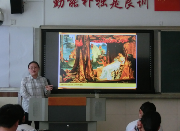 赵亚利、崔恩凤、靳晓萌代表2014级硕士二支部为高二(6)班同学带来了《寻找真实的埃及艳后——克里奥帕特拉》主题讲座。讲座伊始,主讲人赵亚利首先带领同学们回顾了古代埃及的历史,介绍了埃及各个重要时期的具体特点和代表成就,使同学们对于埃及这一文明古国有了一个全面宏观的了解。随后,赵亚利运用大量的图片和音频资料,借助当今的科学研究成果向同学们介绍了埃及艳后——克里奥帕特拉的传奇人生,带领同学们解开围绕在埃及艳后身上的诸多谜团,厘清了传说与史实的差异,引导同学们更加客观地认识历史上的人和事。