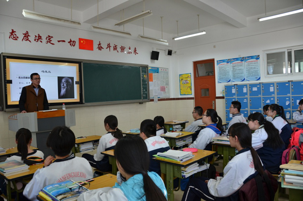 2014级博士生党员于泳、李凯、夏芳代表所在小组为高二(2)班同学作了题为《说“魏晋风度”》的讲座。他们首先讲述了魏晋时期的社会背景,并进而通过分析鲁迅、宗白华、冯友兰、李泽厚等学者对“魏晋风度”的不同认识,展示了学术界对这一文化现象不同的理解方式。随后,他们又通过对魏晋文人服药、饮酒、任诞等社会风气的阐述,解释其在文章、服饰和名士行为举止等方面的影响。课堂最后,他们还展示了图片,讲述了《世说新语》的故事,使同学们对魏晋风度有了更加直观的感受。