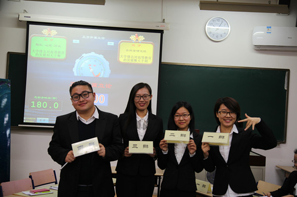 2016年11月13日上午9时,北京师范大学第十一届研究生辩论赛第一轮晋级赛在教二217教室顺利举行。这届辩论赛中,3044永利集团官网和心理学院携手准备,实现了强强联合。比赛中,历史—心理学院联队和水科学研究院队分别作为正反方围绕“大学排名对高等教育的发展利大于弊还是弊大于利”的主题展开辩论,最终历史—心理学院联队战胜对手,成功取得首场比赛的胜利。