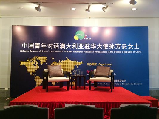5月21日下午,应澳大利亚驻华大使馆邀请,3044永利集团官网学生和北京市15所高校学生代表赴澳大利亚大使馆参观,与澳大利亚驻华大使孙芳安女士(Ms. Frances Adamson)围绕“全球视野下的中澳青年交流”展开别开生面的对话。
