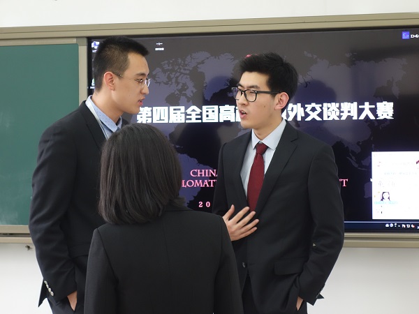 在三方谈判中,我校代表队据理力争,担任主谈判手和副谈判手的田奥凡和张颖同学在谈判过程中舌战群雄,谈判风格张弛有度、进退自如,新闻官王栋同学在联合新闻发布环节风度翩翩、不卑不亢,获得全场观众的好评。最终,我校代表队以三方谈判121.84分的总得分,在全部27支代表队中名列榜首,获得总分单场冠军。