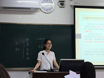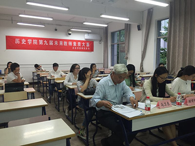 两个分赛场同时进行比赛,每位选手分别进行十五分钟的试讲,最后根据评委的打分各取前3名选手进入决赛。选手们都做了非常充分的准备,试讲范围涵盖高中和本科课程,内容包括文艺复兴、近代中国经济结构的变动、工业革命、俄国十月革命、从蒸汽机到互联网、希腊先哲的精神觉醒、美国联邦政府的建立、抗战胜利后的国际国内形势、印度大革命、安史之乱、开辟新航路、国民党派系斗争等。各位选手备课认真,或运用多媒体,或与学生互动,或引经据典,将课程以最生动的形式展现在大家面前,赢得在场老师和同学们的阵阵掌声。