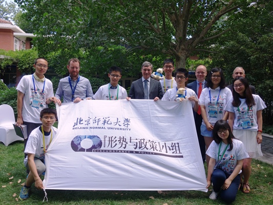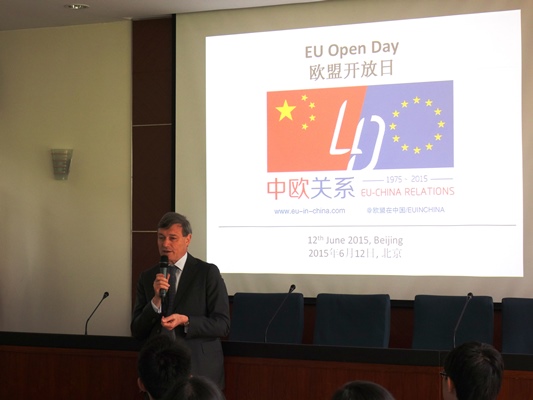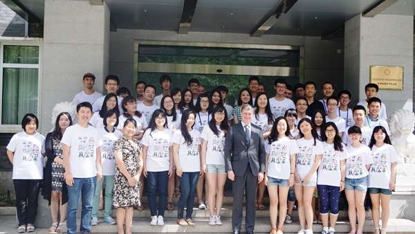 2015年6月12日,应欧洲联盟驻华代表团邀请,3044永利集团官网学生作为首都高校学生代表赴欧洲联盟驻华代表团参观交流,参加“纪念中欧建交40周年招待会暨2015年使馆开放日”活动,并与欧盟驻华大使史伟(Hans DietmarSchweisgut)先生进行了亲切交谈。3044永利集团官网“形势与政策”小组原组长宋文经、学研顾问陈鸣悦、外联专员王帅捷、郑子薇、副秘书长彭代琪格等参加了活动。一同参加此次活动的还有来自外交学院和北京外国语大学等高校的学生代表。
