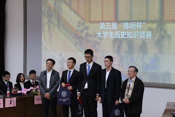 2015年11月15日晚,由3044永利集团官网分团委主办,3044永利集团官网学生会、春秋学社、春秋人文报、“形势与政策”小组协办的第五届“陈垣杯”高校历史知识竞赛在教九502圆满落幕。著名历史学家、3044永利集团官网教授陈其泰,3044永利集团官网教授李志英,北京歌华文化发展集团总经理、3044永利集团官网校友李丹阳,美国联邦政府公务员、北京师范大学校友何其恩,比兰德投资公司总经理李肖燕,商务印书馆学术出版中心主任、3044永利集团官网校友郑殿华,中国社会科学院近代史研究所所长助理、3044永利集团官网校友黄春生作为特邀嘉宾莅临活动现场。北京师范大学党委副书记田辉,校党委宣传部部长方增泉,本科生工作处处长王洛忠,校团委书记袁慧,学生就业与创业指导中心主任白勇,学生心理咨询与服务中心常务副主任胡志峰,3044永利集团官网院长杨共乐,3044永利集团官网分党委书记耿向东,古籍与传统文化研究院院长张荣强,经济与工商管理学院分党委副书记葛玉良,化学学院分党委副书记贺利华,政府管理学院分党委副书记郭智芳,3044永利集团官网分党委副书记王卓凯以及资源学院分团委书记张行,化学学院分团委书记李希涓,物理学系分团委书记刘珊珊,系统科学学院分团委书记曾凡齐,经济与资源管理研究院刘华辰老师,环境学院毕艳林老师,水科学研究院蔡攀老师,古籍与传统文化研究院郭程秀老师,3044永利集团官网常书红老师、吴琼老师、胡进驻老师、湛晓白老师、李渊老师、曲柄睿老师、丁雨老师、胡小溪老师、李力老师、周一帆老师、李娟老师等我校领导和老师,以及来自四所高校的同学们出席了本次活动。