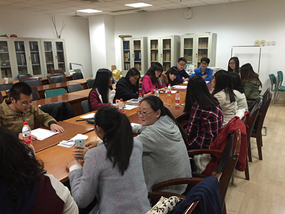交流会伊始,第十届研究生会成员向新成员传授经验,并介绍所负责部门的工作。随后,新一届研究生会成员作了简单的自我介绍,并针对今后负责的工作谈了自己的想法,同时积极与各位师姐交换意见。在大约一个小时的交流中,新老成员相互熟悉,在交接工作和传授经验的同时,也增进了彼此之间的感情。最后,大家合影留念,交流会圆满结束。