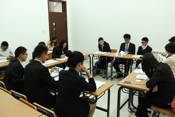 5月17日进行的第二轮比赛为三方谈判,由吴靖、王聿闻、王涛利三位同学组成的我校代表队与清华大学代表队和北京大学代表队展开了交锋。本场谈判以塞浦路斯的独立和经济发展问题为背景,要求三校代表队分别代表塞浦路斯周边的G国、T国以及与塞国周边地区存在利益关系的A国,就塞浦路斯的独立、政治体制和M海油气开发问题展开谈判,争取本“国”利益的最大化。本轮谈判相比于一轮更为紧张激烈。谈判甫一开始,我校选手代表的G国与北京大学选手代表的T国就塞岛北部独立或南北统一争执不下,谈判形势剑拔弩张。清华大学选手代表的A国作为调停国极力从中斡旋,以避免谈判僵局的出现。三支代表队在本轮比赛中均表现出了不俗的实力。最终,我校代表队遗憾止步。