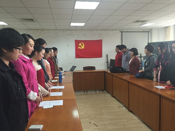 在庄严的国际歌后,党支部书记李娟总结回顾了上学期党支部开展的各项工作,包括支委培训、入党积极分子教育培养等;同时,结合同学实际需求,支部申请并落实完成三项校研工处党建基金。本学期,党支部在继续完善组织建设、制度建设基础上,以建设学习型党支部为目标,结合“纪念抗日战争胜利70周年”的主题,开展师生共建理论学习、专家讲座等活动。