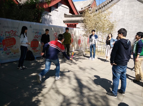 4月17日,在班长和雪绒绒花使者的带领下,16位同学一路欢声笑语来到北海公园进行素质拓展活动。活动开始,雪绒花使者要求同学们几人一组,在美丽白塔的前拍一张互相拥抱的照片留作青春的回忆,这个小小的“热身”一下子便增进了彼此间的亲密感。随后在班长的主持下,以童年游戏为主的素质拓展项目“丢手绢”“老鹰捉小鸡”“毽子接力”“跳皮筋”“贴膏药”等依次开展起来,每位同学都全身心地参与,放松地玩耍,纵情地欢笑。在中间休息阶段,大家一边吃着童年零食,一边分享着自己的儿时趣事囧事,春风习习尚带着一丝凉意,同学们却非常享受那一刻的温情和舒适。最后,大家一起合唱了《让我们荡起双桨》,表达对于逝去童年的美好怀念以及对于当下青春的无限珍惜之情。与此同时,此次的北海公园素质拓展活动也在同学们的歌声之中圆满结束。