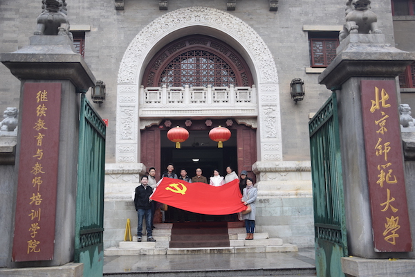 随后支部成员来到辅仁大学旧址。辅仁大学创建于1925年,是民国时期著名的教会大学,1952年院系调整时并入北京师范大学。抗日战争时期,辅仁大学毅然留守沦陷中的北平,并拒绝日伪的奴化教育,成为名副其实的“抗日大本营”。陈垣老校长坚持办学保护抗日师生,同时潜心向学,阐发历史上的爱国主义传统。在敌后艰难的环境下,辅仁大学培养出大量爱国师生和专业人才。支部成员首先参观了辅仁大学教学楼,了解了陈垣老校长生平事迹。随后又参观了极具传统特色的校园,特别是“一二九”纪念碑,这让同学们在对校史感到自豪的同时,深刻认识到民国时期青年学生的爱国情怀和今天安定学习生活的来之不易。