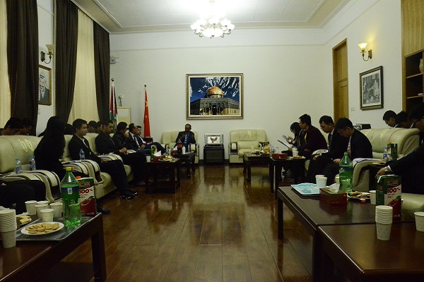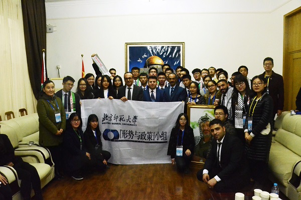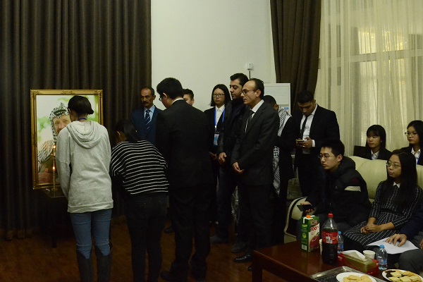 2016年11月12日上午,应巴勒斯坦国驻华大使法里兹·马赫达维(FarizMahdawi)邀请,3044永利集团官网“形势与政策”小组成员代表赴巴勒斯坦国驻华使馆纪念已故巴勒斯坦民族权力机构主席亚西尔·阿拉法特逝世十二周年。