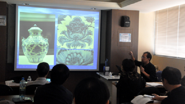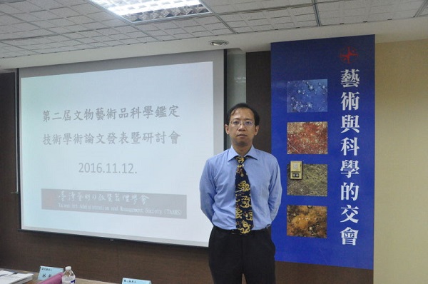 2016年11月12日本院考古学与博物馆学教研室陈殿老师应台湾艺术行政暨管理学会邀请,参加第二届《文物艺术品科学鉴定技术学术研讨会(2016)》,在研讨会上作了题为《青花混水画法及其在鉴定中的应用》的演讲,获得一致好评,并在次日为该会再作了题为《历代青花画法及其在鉴定中的应用》的专题讲座。