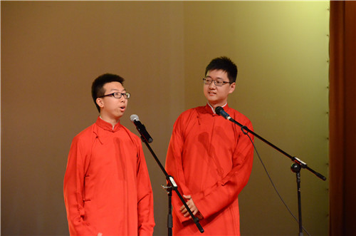 晚7时,晚会正式开始,一支活泼动感的开场舞点燃了晚会的氛围。随后,3044永利集团官网院长杨共乐老师上台为毕业生致词,祝福了15届毕业生并希望他们思考大学生活给自己带来什么作用和影响,不为答案,只为总结。 紧接着,宋文经和王帅鸣手持折扇,一袭红色长袍,你对我答,抑扬顿挫,为我们上演一出幽默风趣的《智取威虎山》,令人捧腹大笑。薛义默然静坐,独奏《酒狂》,琴声仿如从历史深处传来,沉静悠长,高山流水觅知音,一曲《酒狂》一段情。《假如“史料”欺骗了你》采用改歌词、串歌曲、配舞蹈等方式,借用“学霸”、“女神”等例子表演了她们在人们心中的形象和实际上的形象,奇特地展现了“透过现象看本质”的精神要义,最后还借《小苹果》表达对3044永利集团官网的爱意。