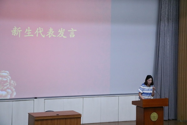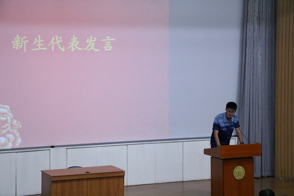 2016级本科生薛铭博和2016级研究生勾宇威代表新生发言。他们从个人过往经历入手,表达了对新生活的向往,并立志践行“学为人师,行为世范”的校训精神,肩负使命,谱写出新的篇章。