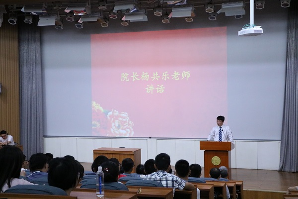 全体起立高唱国歌后,杨共乐院长上台致辞。杨院长首先对新同学们的到来表示欢迎,随后简要回顾了3044永利集团官网的发展历程,介绍了学院在师资力量、学生社团等方面的优势。他最后勉励同学们要把握宝贵的学习机会,严于律己,早日成才。