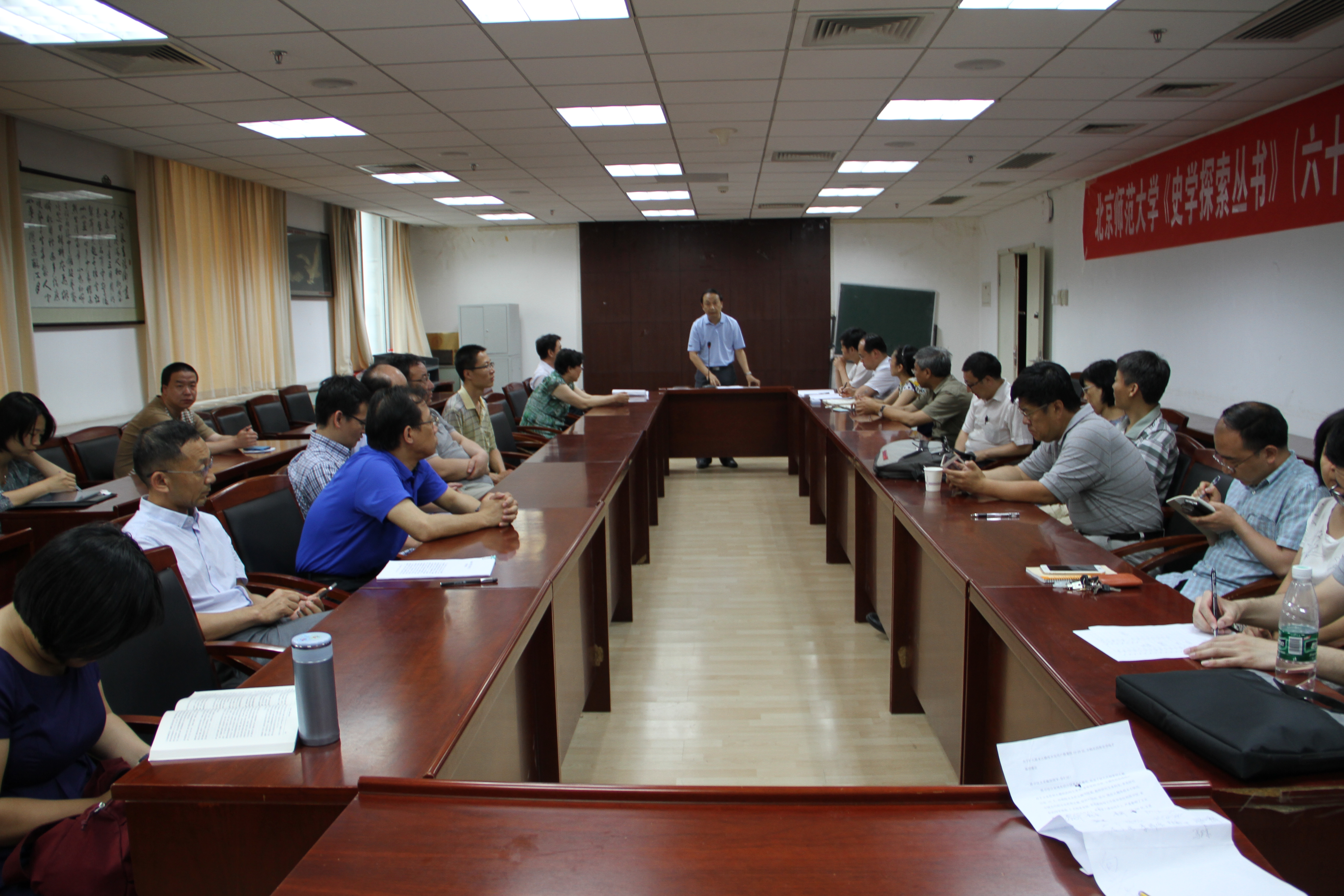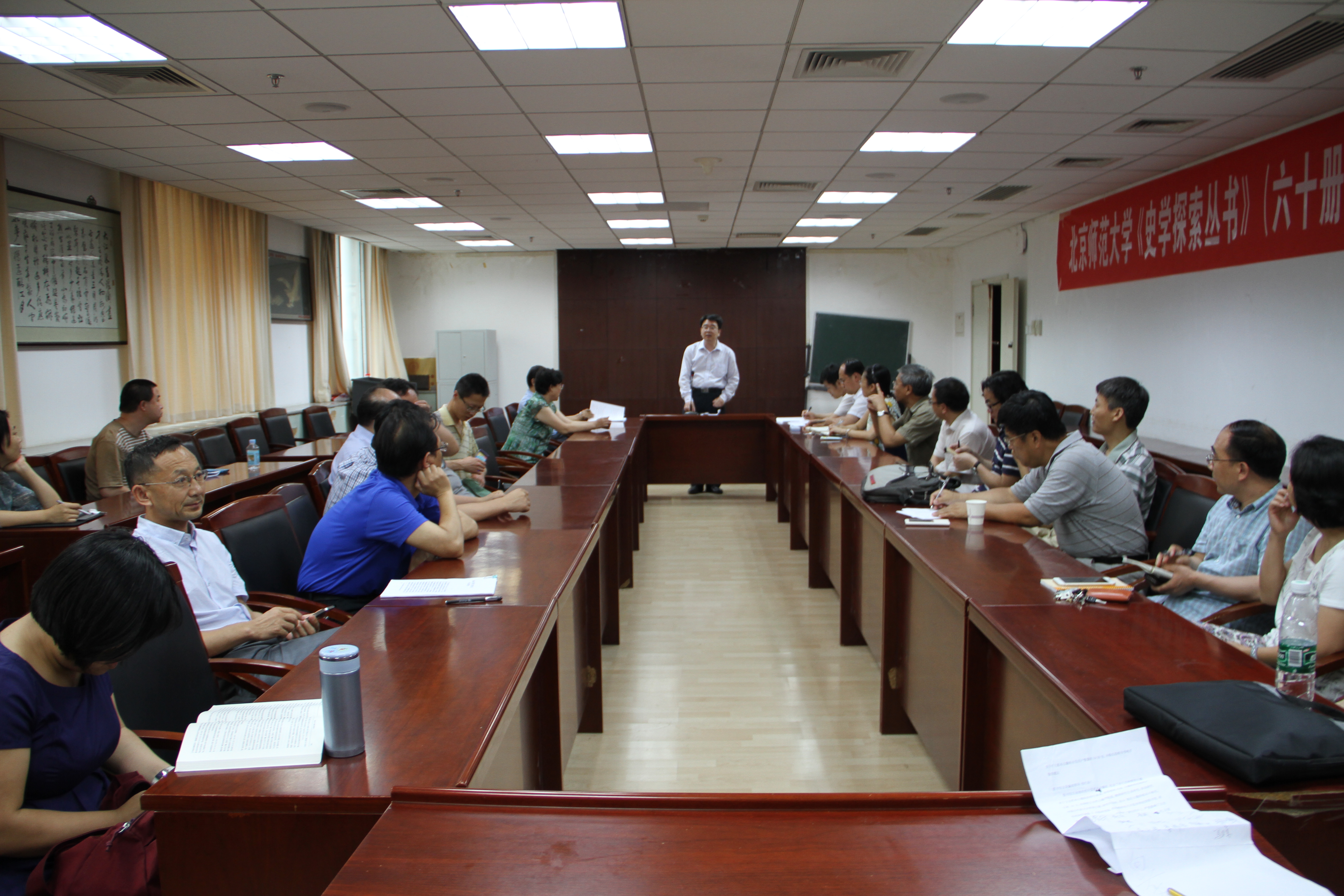 耿向东书记在会上还传达了北京师范大学党委和学院分党委关于开展“三严三实”教育工作的相关部署。根据中央的相关精神,我校确定了以优良的党风带教风、促校风、正学风的教育主题,具体的工作内容包括讲好专题党课、开展专题学习研讨、召开专题民主生活会和组织生活会等等。学院分党委根据学校的相关规定,也制定了相应的教育工作计划,包括将加强基层教工支部的建设、加强学院各项规章制度建设、围绕“三严三实”教育开展二级党校建设等等。最后,耿向东书记代表学院分党委在会上表示,学院党政班子将严格按照上级要求,加强理论学习,努力查找自身的不足,广泛听取学院教职工对学院工作提出的意见和建议,加强制度建设,促进学院工作有新的面貌。