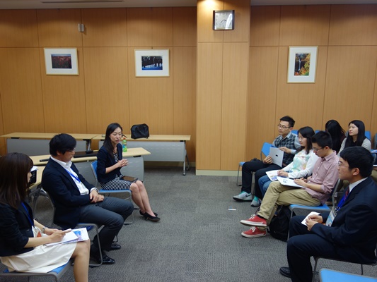 5月8日,应北京大学研究生会主席团的邀请,3044永利集团官网“形势与政策”小组成员赴日本驻华大使馆参观交流。大使馆一等秘书名子学、负责使馆新媒体宣传工作的山崎智子及翻译榊阳子在大使馆文化交流中心接待。