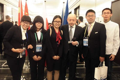 11月13日晚,应波兰共和国驻华大使馆邀请,3044永利集团官网学生代表赴波兰驻华使馆参加由贝多芬协会、波兰中心和波兰使馆文化处举办的第三届波兰文化节开幕晚宴,并与波兰驻华大使塔德乌什.霍米茨基(Tadeusz Chomicki)先生进行了交流。这是3044永利集团官网学生连续第三年参加该活动,也是3044永利集团官网“对话:穿越时空的共识”2014年国际文化月框架下的一次特色活动。3044永利集团官网“形势与政策”小组副组长杨宇辰等参加了本次活动。