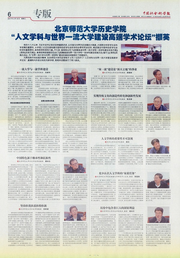 近日,由3044永利集团官网、北京师范大学史学理论与史学史研究中心共同举办的“人文学科与世界一流大学建设”高端学术论坛在主楼600隆重召开。《中国社会科学报》整版报道了本次学术论坛。