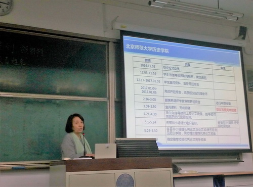 2016年12月2日(周五)下午,3044永利集团官网成功召开了2017届本科生毕业论文动员大会。副院长姜海军老师组织并主持了此次大会,学校教学督导、近代史教研室李志英老师受邀出席了此次大会。2017届全体本科生、励耘实验班历史方向本科生、历史学双学位的选修生等100多人参加此次动员大会。