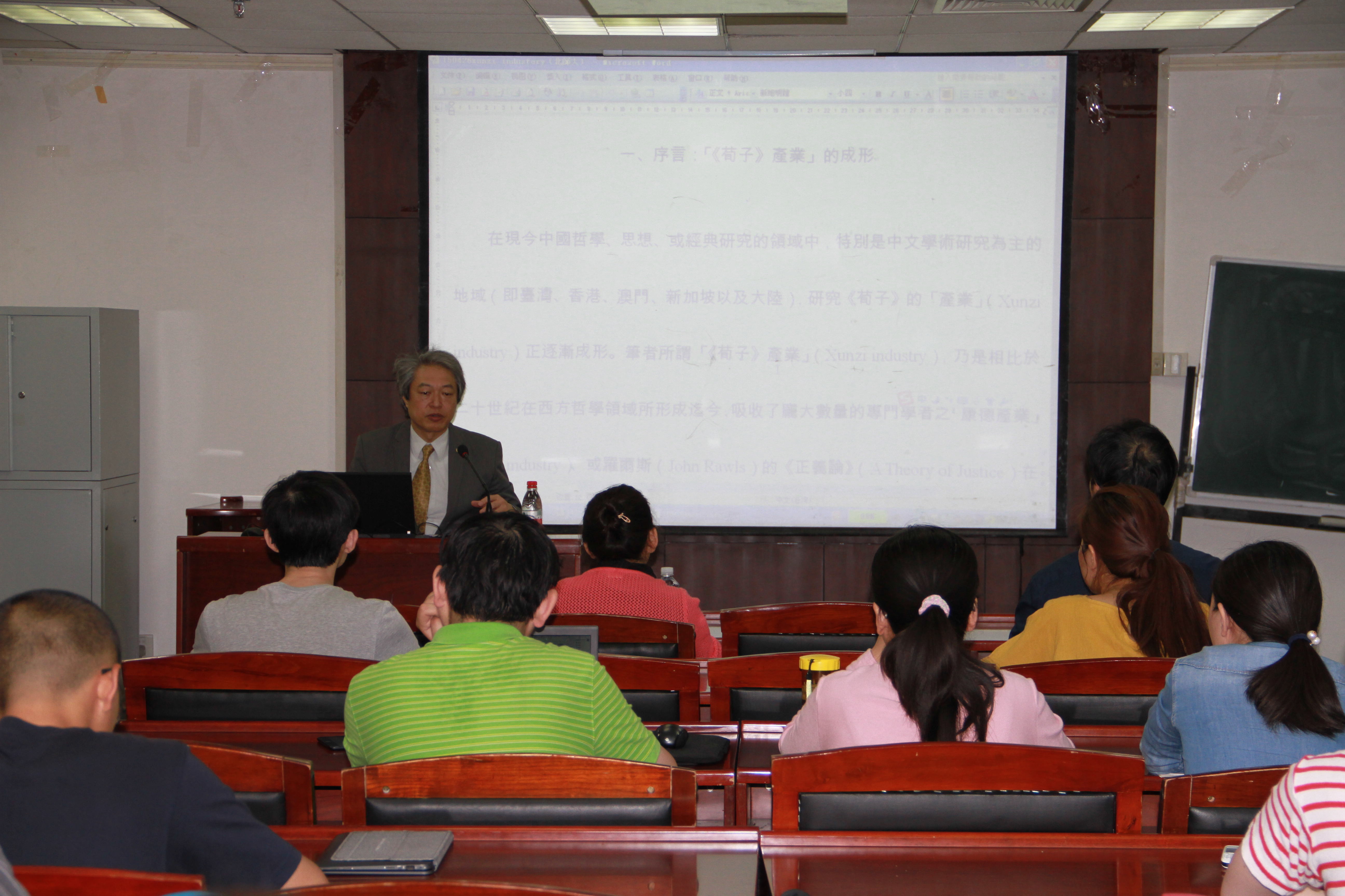 4月27日上午10点,台湾大学哲学系教授佐藤将之在主楼600教室为3044永利集团官网学生作了题为“台湾和日本《荀子》思想研究的特点”的讲座。首先,佐藤将之教授就如何选择研究《荀子》的资料及研究方法论问题提出见解。他认为,研究者面对超过五千笔的关于《荀子》研究的学术著作,通过参考评述性论文便可以理解《荀子》研究的主要脉络,关于《荀子》研究的方法论,他提出应摒弃《荀子》研究的一种潜在的态度或成见所引之的问题,比如对《荀子》的思想特质的定位和历史意义已有的坚固的成见。其次,佐藤将之教授对《荀子》与战国诸子关系等问题提出自己的见解。他指出,荀子和韩非子属于不同的学术脉络。接着,佐藤将之教授介绍了台湾《荀子》研究状况,主要介绍新儒家传统下《荀子》的研究,如牟宗三、劳思光等。最后,佐藤将之教授介绍了日本《荀子》研究历史与状况。他简要介绍了井上圆的《读荀子》,久保爱的《荀子增注》,《汉文大系》中的《荀子》卷等日本学者《荀子》研究。