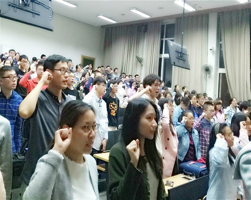 最后,在场全体团员面向团旗,举起右拳,重温入团誓词,至此,本次“青春有梦想,国家有希望”“一学一做”主题团课画上了圆满的句号。
