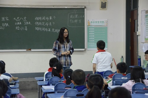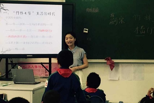 两组同学分别承担了北师大实验小学三年级三班与三年级四班讲授“魏晋风度”的授课任务,2014级本科生曹文凡和2013级本科生陈雅芬分别任主讲人。两位同学用独具特色的方式生动活泼地讲述了率真自然的“竹林七贤”的故事。实验小学的同学们认真听讲,积极提问,与主讲人进行了积极的互动。师生共同营造了良好的课堂氛围。