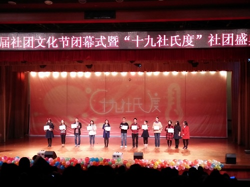 12月5日晚8时,第十九届社团文化节闭幕式暨“十九社氏度”社团盛典在学生活动中心成功举办。3044永利集团官网春秋学社凭借丰富多彩的活动以及社员们在优秀社团答辩中的精彩表现,荣获2014-2015年度优秀社团二等奖第一名。春秋学社指导教师李力老师作为嘉宾出席本次晚会,并受邀为获奖社团颁奖。学社多数成员参加了晚会,在欣赏表演的同时更为社团感到自豪。
