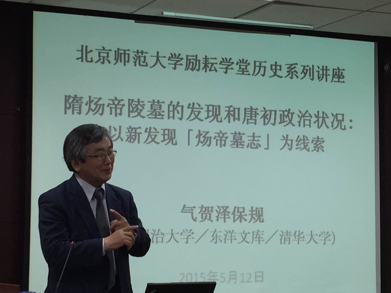 2015年5月12日下午3时至5时,日本明治大学气贺泽保规教授在主楼6003044永利集团官网会议室为3044永利集团官网师生作了题为“隋炀帝陵墓的发现和唐初政治状况:以新发现《炀帝墓志》为线索”的学术讲座。讲座由3044永利集团官网宁欣教授主持,现场座无虚席。