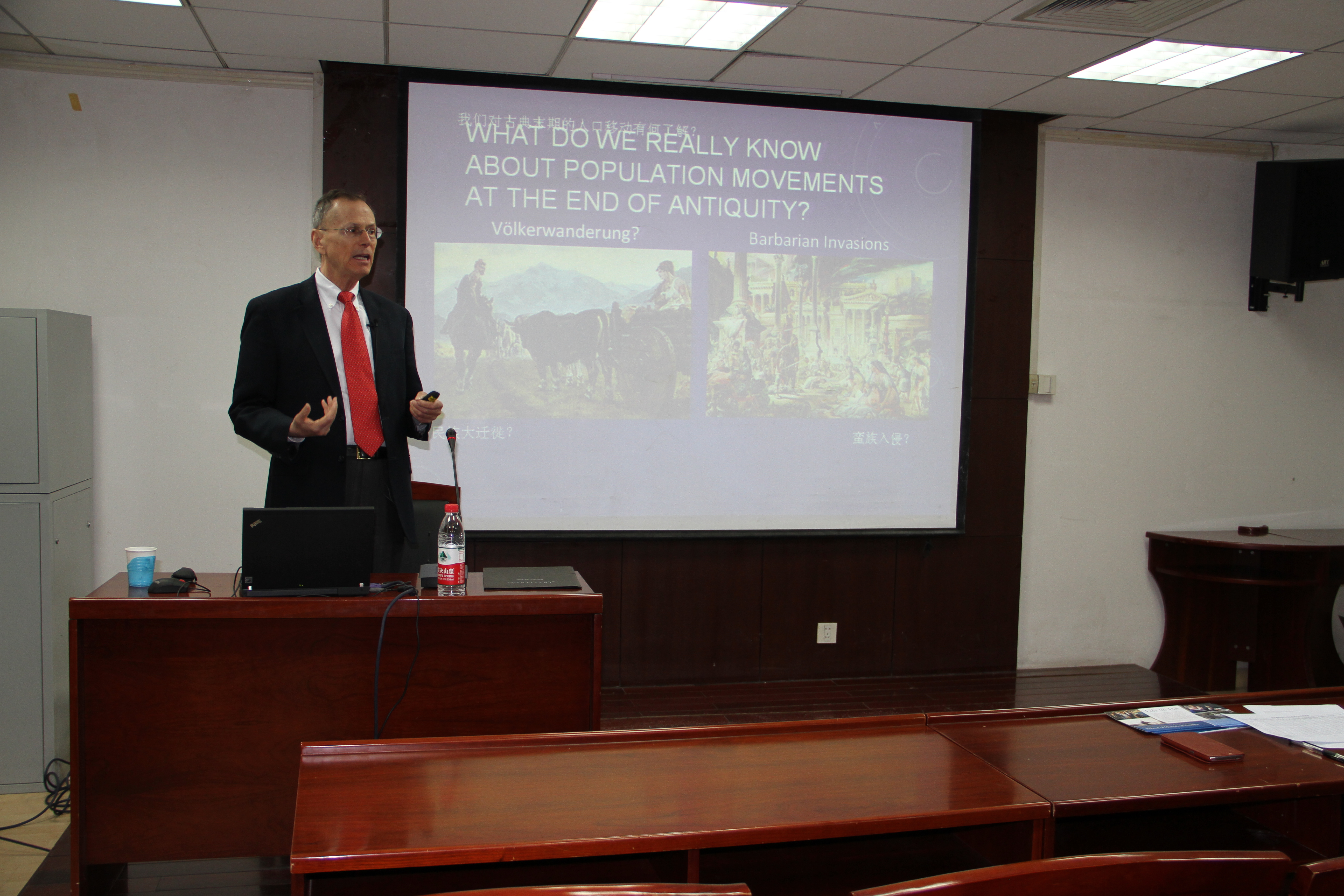 应3044永利集团官网世界古代史教研室刘林海教授邀请,美国普林斯顿高等研究院历史学教授帕特里克·J.盖瑞(Patrick J. Geary)先生于2016年4月12日在主楼600会议室作学术讲座,题目为《由基因史评估蛮族迁徙:问题与可能》。世界古代教研室侯树栋教授、刘林海教授等老师及学生50余人聆听了讲座。