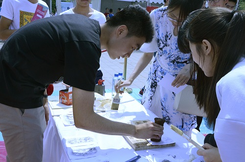 春秋学社组织的传统文化体验活动包括拓印、投壶两部分。拓印之乐、投壶之趣,极大地吸引了其他社团和参观人群的注意。从体验活动之初到活动结束,围观、参与活动的人数有增无减。活动期间,主办方的领导、老师们纷纷驻足指导,并亲身参与活动。同时,学社的刊物《春秋学刊》也得到了活动主办方与其他社团的高度评价。他们在对学社工作给予高度评价的同时,也表达了与学社进行更深层次交流合作的意愿。