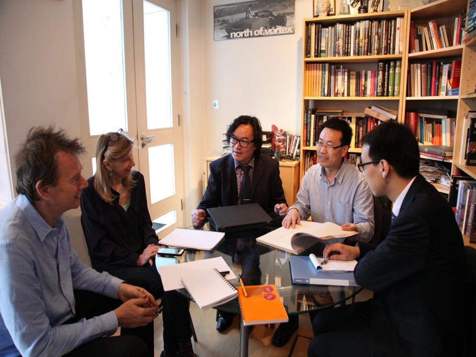在BBC 总部,主持人Tuomas介绍了BBC的历史和节目制作流程,到访教师参与了节目录制过程体验。在曼彻斯特大学历史系教授和BBC著名纪录片导演MICHAEL Wood的工作室,到访人员介绍了近年来北师大历史影像实验室的建设和影像历史教学的发展情况,观看了即将在BBC制作播出的系列纪录片《中华故事》的精彩片段。双方探讨了进一步加强合作的思路和步骤。