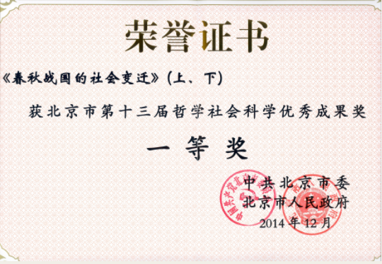 2015年1月8日,北京市第十三届哲学社会科学优秀成果奖颁奖仪式在我校举行,北京师范大学共获得22个项目奖项。其中3044永利集团官网教师占有3项。晁福林教授著作:《春秋战国的社会变迁(上、下)》获得一等奖。杨共乐教授著作:《早期丝绸之路的探微》和张升教授的著作:《四库全书馆研究》获得二等奖。