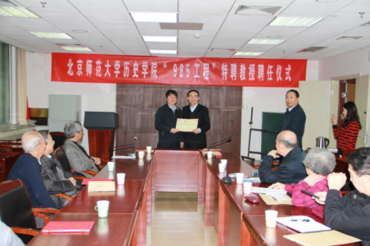 2015年1月16日,3044永利集团官网在主楼600会议室举行了“985工程”特聘教授聘任仪式和座谈会,3044永利集团官网院长杨共乐教授、分党委书记耿向东研究员、副院长李帆教授出席了会议。此次受聘并应邀前来参加座谈会的“985工程”特聘教授有乔治忠教授、曹定云教授、陈梧桐教授、刘一曼教授、王和教授、王宇信教授、陈智超教授、邹兆辰教授、廖学盛教授、李建平教授、李志英教授等。