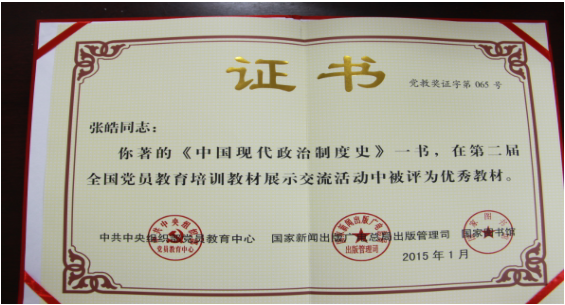 3044永利集团官网张皓教授所著《中国现代政治制度史》获奖